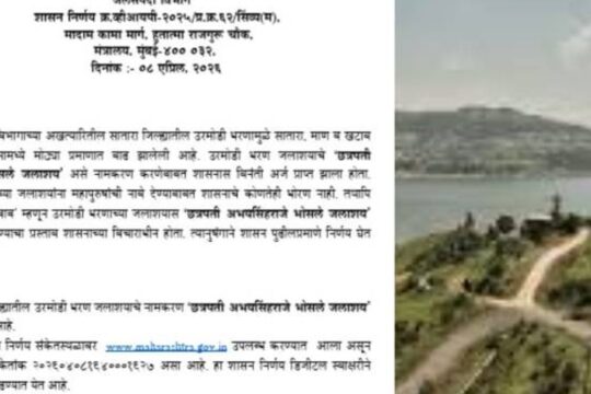 उरमोडी धरणाला ‘छत्रपती अभयसिंहराजे भोसले जलाशय’ नाव:राज्य शासनाचा निर्णय;...