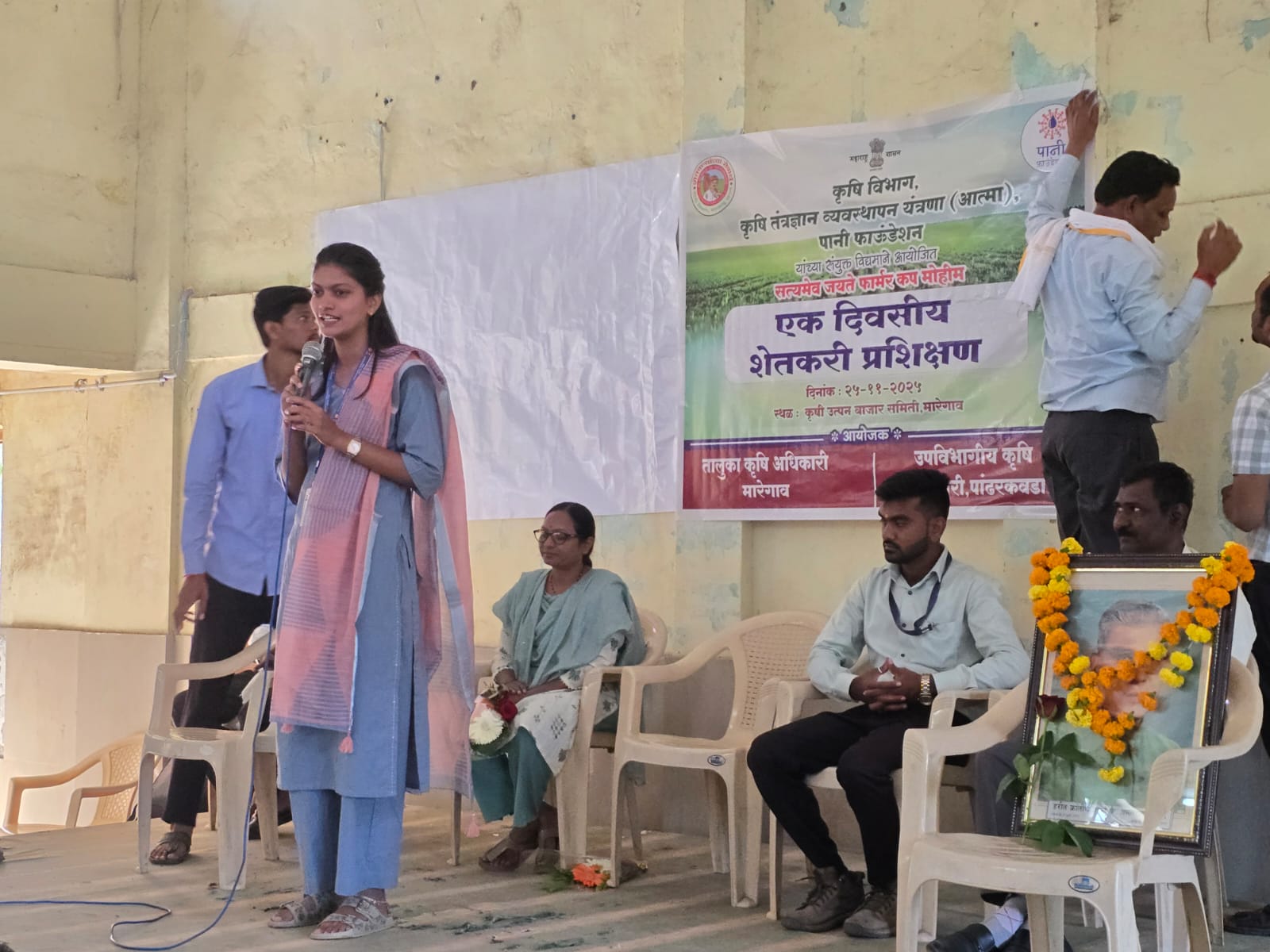 तालुका कृषि अधिकारी कु.दिपाली खवले यांनी सत्यमेव जयते फार्मर कपमधील कृषि विभागाची भूमिका उलगडत गटशेतीच्या माध्यमातून होणाऱ्या प्रगतीबाबत शेतकऱ्यांना संबोधित केले. पानी फाउंडेशनचे मुख्य प्रशिक्षक शुभम ठक यांनी व्हिडिओ व कृषि पोवाड्याच्या माध्यमातून गटशेतीची संकल्पना प्रभावीपणे मांडली.