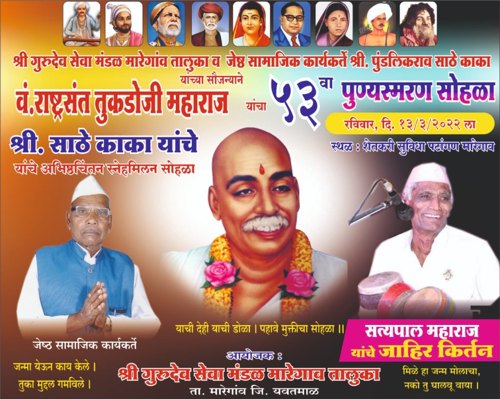 श्री गुरूदेव सेवा मंडळ मारेगाव तालुका व श्री साठे काका यांच्या सौज्यन्याने आयोजन करण्यात आले आहे..