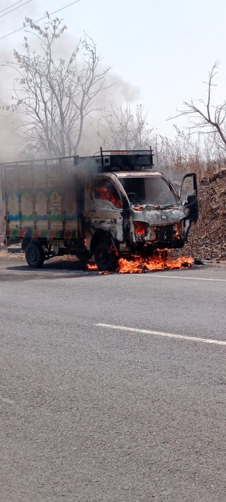 वणी यवतमाळ राज्य महामार्गावरील बुरांडा व बोटोनी च्या मधात धावत्या टाटा एस या गाडीला अचानक आग लागून समोरील कँबिन जळून खाक झाल्याची घटना आज दिनांक 30 मार्च 2022 रोज बुधवारला सकाळी सुमारे 11वाजताच्या सुमारास घडलीआहे.या घटनेत कुटलीही जिवीतहानी झाली नाही. मारेगाव पोलिसांच्या सतर्कतेने आगीवर नियंत्रण मिळविण्यात आले यश.