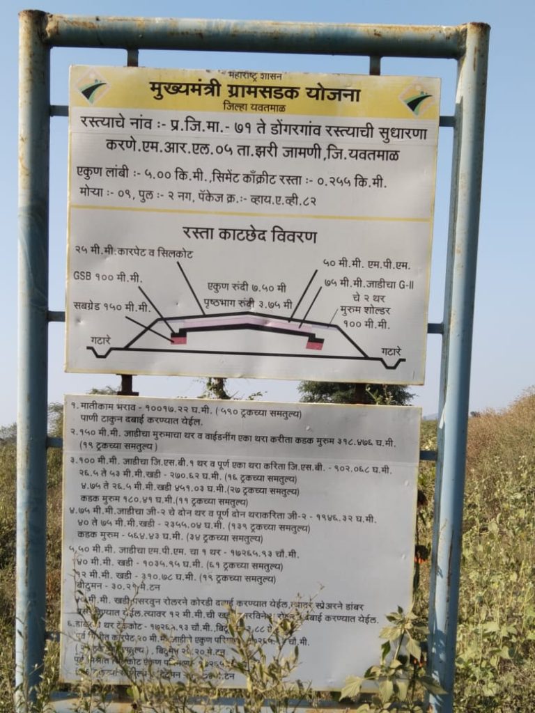 झरी जामणी मुख्यमंत्री ग्रामसडक योजने अंतर्गत डोंगरगाव सिंधी वाढोणा ५ कि.मी. रस्त्याचे पुलासहित पुलासहि कामाला मंजुरी देण्यात आली होती . कामाला सुरूवात करण्यात आली परंतु उपलब्ध निधी कमी पडल्याने गेल्या तीन वर्षापासून डोंगरगाव ते सिंदीवाढोना या रस्त्या चे काम बंद झाले होते. या तीन वर्षात प्रचंड त्रास डोंगरगाव येथे ग्रामवसी यांना करावा लागला आणि रस्त्यावर गीट्टी टाकून असल्या ने अनेक अपघात देखील झाले.