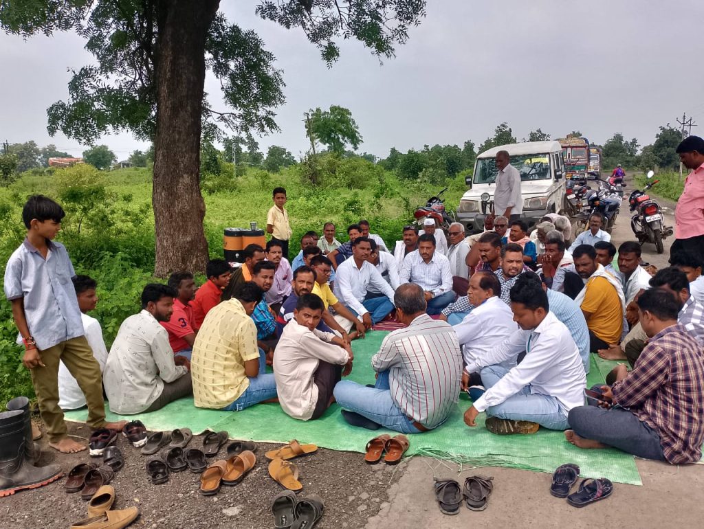 सिंमेट कॉक्रीट रोडच्या मागणी साठी रेल्वे पुलावजवळ रास्ता रोको.