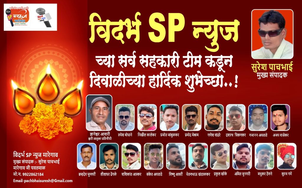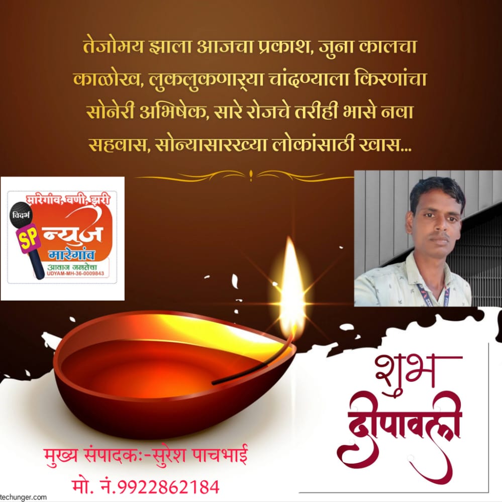 विदर्भ SP न्युज च्या सर्व टीम कडून मारेगाव, वणी, झरी (जामणी), केळापुर, राळेगाव, तालुक्यातील जनतेला दिवाळीच्या हार्दिक शुभेच्छा.