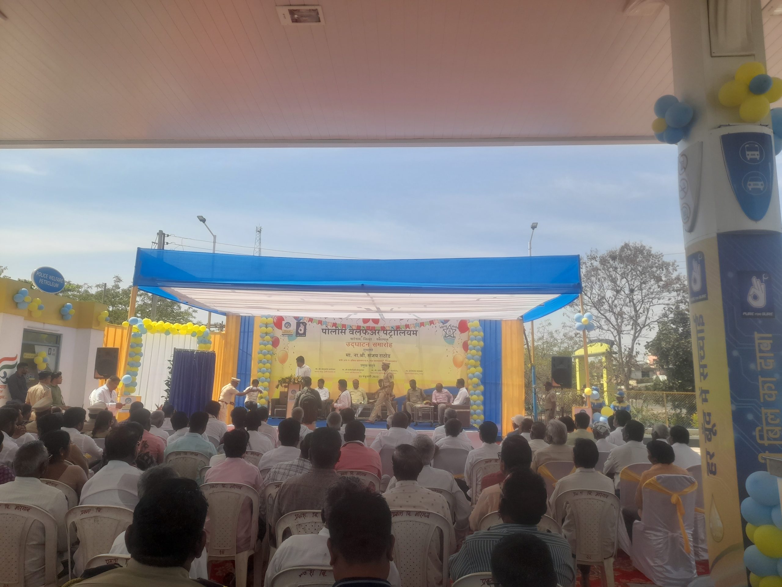 सुरेश पाचभाई मारेगाव :- येथील मागील अनेक दिवसांपासून उदघाटनाच्या प्रतीक्षेत असलेल्या पोलीस स्टेशन समोरील भारत पेट्रोलियमचे पेट्रोलपंपचे उदघाटन अमरावती परिक्षेत्राचे पोलीस महानिरीक्षक जयंत नाईकनवरे यांच्या हस्ते आज दिनांक 23 फेब्रुवारी 2023 रोज गुरुवारला करण्यात आले. यावेळी वणी विधानसभा क्षेत्राचे आमदार संजीवरेड्डी बोदकुरवार अध्यक्षस्थानी होते.