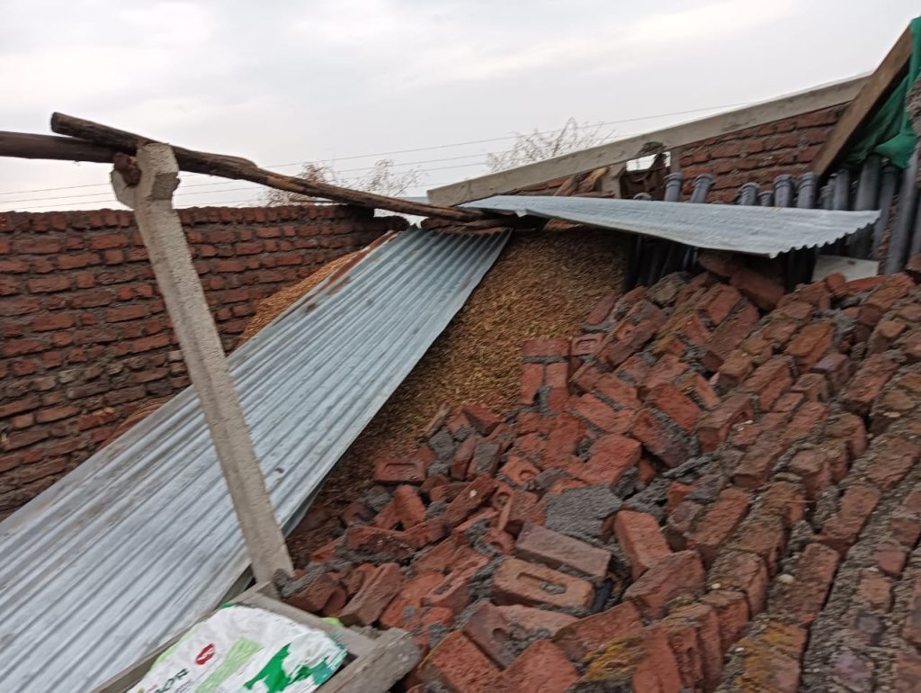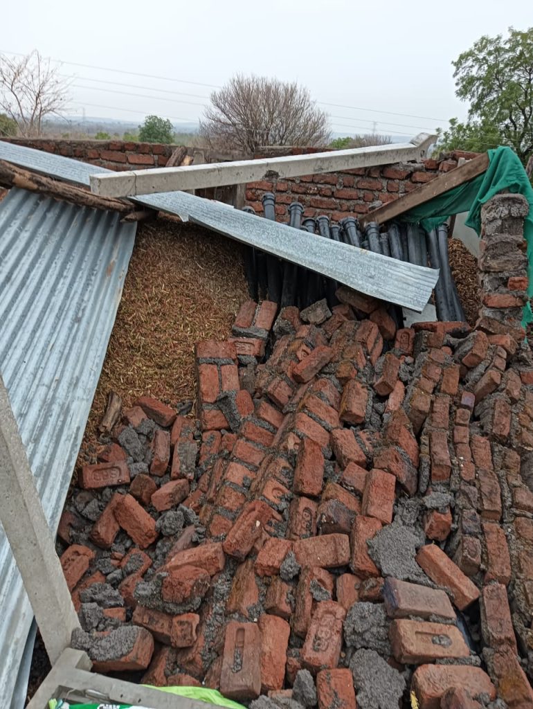 व शेतातील बंड्यात ठेवलेल्या औजारासह स्पिंकलर पाईप,रासायनीक खताच्या 8 बॅग ओल्या झाल्या व कुटाराचे नुकसान झाले आहे.शेतकऱ्याने नुकसानी संदर्भात स्थानिक तलाठी यांना माहिती दिल्याची माहिती आहे.