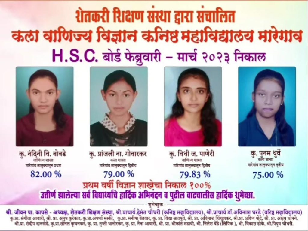बारावीच्या बोर्डाच्या परीक्षेत 82.17 % घेऊन तालुक्यातून अव्वल.