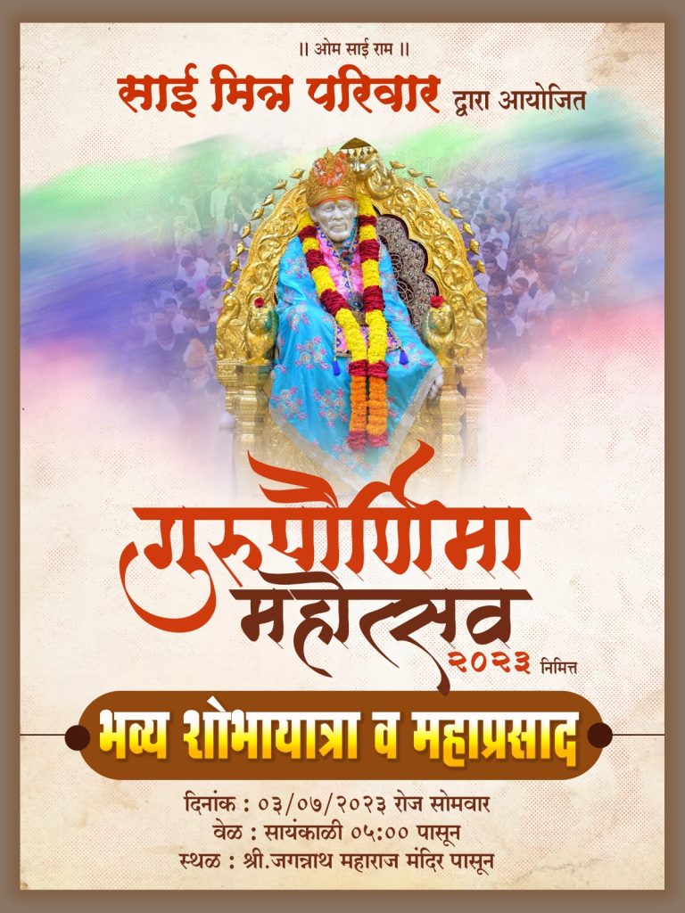 – गुरुपोर्णिमा मोहोत्सव,भव्य शोभायात्रा व महाप्रसाद.