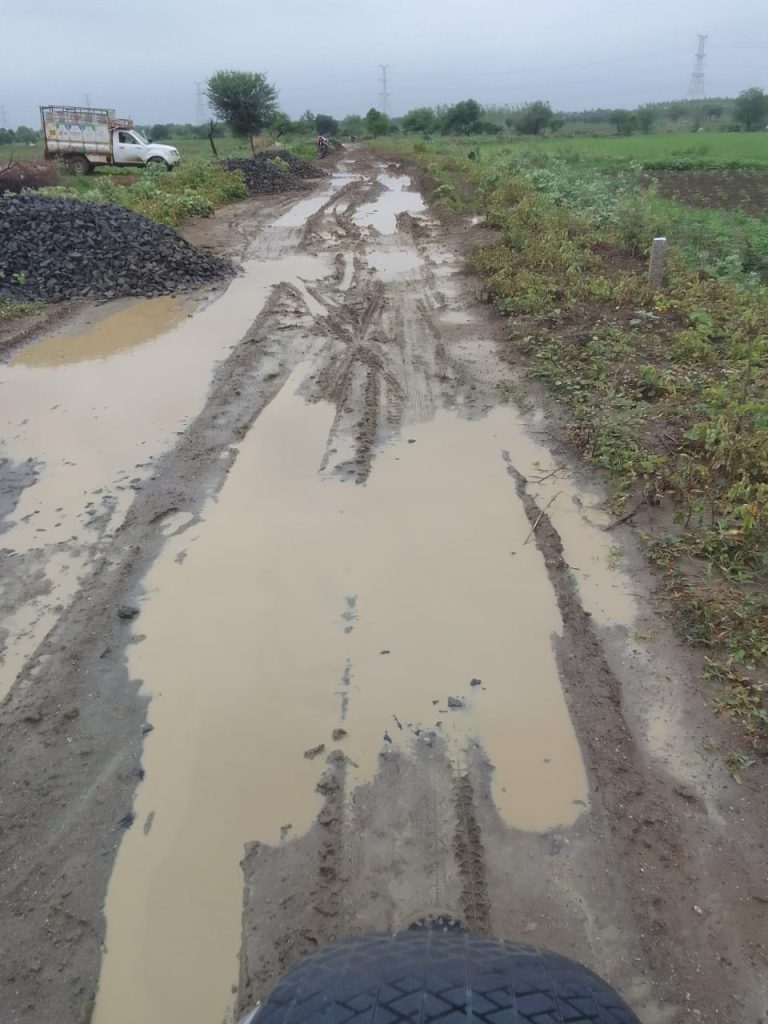 रस्त्यावर काही ठिकाणी गिट्टी टाकलेली आहे.काही ठिकाणी बरोबर दबाई केलेली नसल्याने नागरिकांना वाहन चालवतांना मोठी कसरत करावी लागते.जागोजागी गिट्टी उखरलेली आहे. व चिखलाचे साम्राज्य निर्माण झाले आहे.त्या मुळे हा रस्ता अखेरची घटका मोजत आहे.या कामाला सुरवात होऊन एक वर्षाचा कालावधी लोटला तरी कामाच्या प्रगतीवरून यावर्षी पावसाळ्यात काम पूर्ण होईल याची गॅरंटी कमीच आहे.