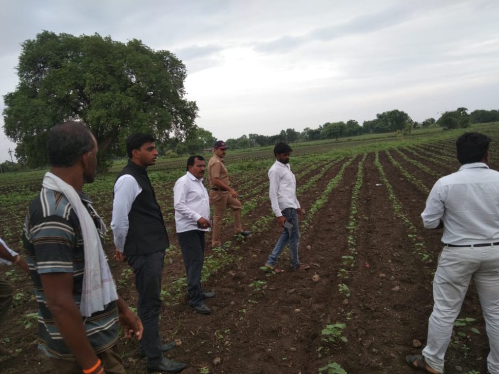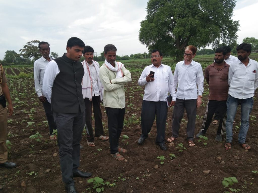 व त्यांचे शेतात पिकाची पाहणी करण्यात आली.शेतात पीक पाहणी करीत असताणा गावातील शेकऱ्याच्या समस्या जाणून घेतल्या.शेतकऱ्यांना मागील वर्षी विमा कंपन्यानी विमा दिला नसल्याची तक्रार काही शेतकऱ्यांनी केली असता त्यावर जिल्हाधिकारी यांनी मारेगाव तालुक्यातील एकुण 7 हजार शेतकरी असे आहे की त्यांना विमा मिळाला नाही.आमचे विमा कंपन्याशी बोलणे चालू असून लवकरच तो प्रश्न मार्गी लावू असे आश्वासन त्यांनी शेतकऱ्याला दीले.