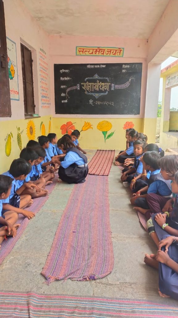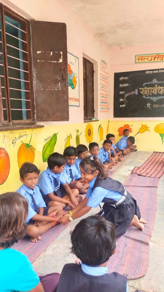 वृक्षाला राखी बांधून तसेच तसेच विद्यार्थ्यांना लाडुचे वाटप करण्यात आले.
