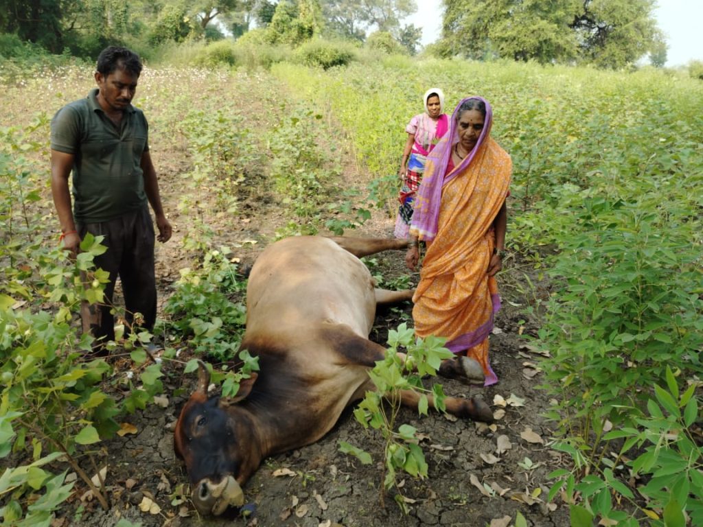 मारेगाव तालुक्यातील मांगरूळ येथील विधवा महिला श्रीमती शकुंतला माधवराव खडसे यांचे कडे 4 एकर शेती असून या महिलेचा बैल शेतामध्ये चरत होता.त्यावेळी अचानक सापाने बैलाला दंश केला.त्यामुळे बैल जागेवरच दगावल्याने गरीब आणि विधवा असलेल्या या महिलेवर आर्थिक संकट उभे राहिले आहे.