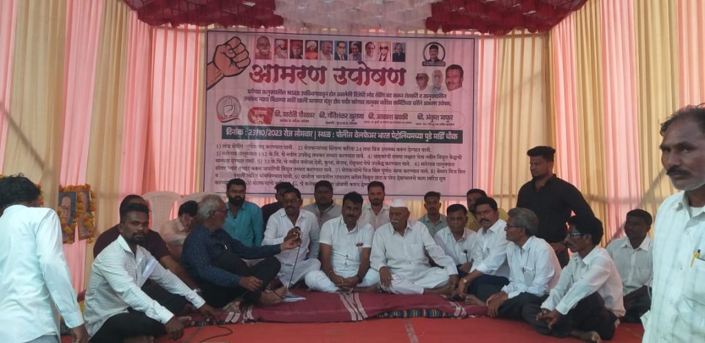 नवीन कृषिचे पंपाचे कनेक्शन त्वरित जोडणी करून देण्यात यावे अशा विविध मागण्या पूर्ण करून जनतेला न्याय मिळावा याकरिता मारेगाव तालुका काँग्रेसच्या वतीने माजी आमदार वामनराव कासावार यांचे मार्गदर्शनात काँग्रेसचे जेष्ठ नेते नरेंद्र पाटील ठाकरे यांचे प्रमुख उपस्थितीत मारेगाव तालुका काँग्रेस चे तालुका अध्यक्ष मारोती गौरकार,मारेगाव कृषी उत्पन्न बाजार समितीचे सभापती गौरीशंकर खुराना, तालुका युवक काँग्रेसचे अध्यक्ष आकाश बदकी, अंकुश माफूर, यांनी सदर उपोषण हे 23 ऑक्टोबर रोज सोमवार पासून मारेगाव येथील मार्डी चौकातील पोलीस वेलफेअर पेट्रोलपंपा समोर सुरू झाले.