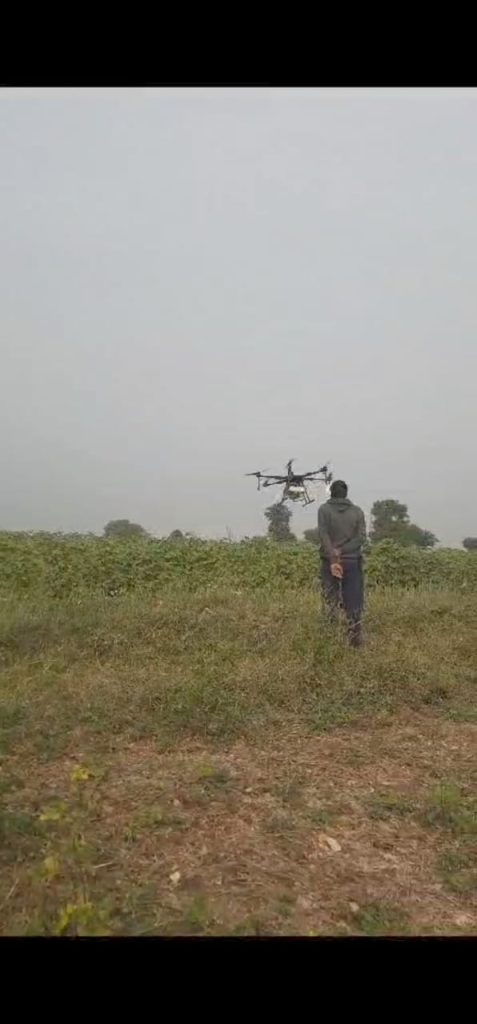 या पिकाला इतर पिकांच्या तुलनेत नियमित व जास्त प्रमाणात फवारणीची गरज आहे . त्यासाठी मजुरांची आवश्यकता असते.हंगामात वेळेवर मजुर मिळाले नाही मोठे नुकसान सहन करावे लागते.वेळेवर मजूर न मिळाल्याने पांढरकवडा (ल.) , मार्की बु.शिवारात अनेक शेतकऱ्यांनी ड्रोन फवारणी यंत्रणा द्वारे कापुस,मिर्ची व तुर पिकांवर फवारणी केली.