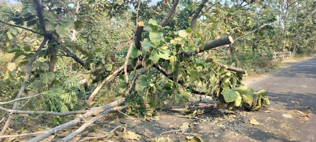 पुराच्या पाण्याने महावृक्ष नावाच्या झाडाची मुळ पूर्ण पने उघडी पडली होती.त्या वृक्षावर सळाळच्या सुमारास असंख्य वानरांनी उड्या मारल्या मुळे ते झाड रोडच्या मधोमध कोसळल्याने मुकुटबन मार्की मार्गे झरी कडे जाणारी वाहतुक पूर्ण ठप्प झाली होती परंतु लोकांची गैरसोय होवू नये यासाठी सामाजिक कार्यकर्ते आझाद उदकवार यांनी सोशल मीडिया माध्यमातून चार चाकी वाहनांसाठी हा मार्ग बंद असल्याचे आवाहन केले.