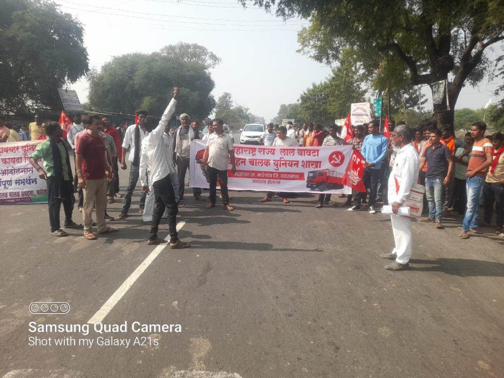 शहरी व ग्रामीण भागातील सर्व वाहन चालक संघटित होऊन वाहन चालकांच्या मानगुटीवर बसणारा वटहुकूम, काळा कायदा रद्द करण्यासाठी तहसीलदार यांचे मार्फत देशाचे गृहमंत्री (भारत सरकार) यांना निवेदन देण्यात आले. केंद्र सरकार च्या विरोधात व हिट अँड रण हा कायदा रद्द करण्याकरिता लाल बावटा वाहन चालक युनियन शाखा नरसाळा, ऑटो युनियन मारेगाव, जय जगन्नाथ वाहन चालक मालक संघटना मारेगावच्या वतीने करणवाडी फाट्यावर सकाळी ११ वाजता केंद्र सरकारचा विरोध व काळा कायदा रद्द करण्यासाठी रास्ता रोको आंदोलन करण्यात आले यावेळी तालुक्यातील सर्व वाहन चालक व मालक सहभागी झाले .