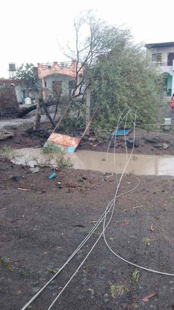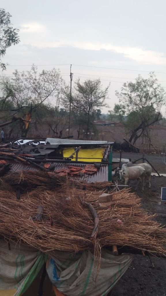 आज दिनांक सहा जूनला दुपारच्या सुमारास आकाशामध्ये अचानक ढग दाटून आले आणि वादळ वाऱ्यासहित गारपीट आणि पावसाला सुरुवात झाली.वारा एवढा सोसाट्याने वाहत होता की या वाऱ्याने रस्त्यावरील झाडे सुद्धा ऊन मळून पडली अनेक गावातील अनेकांची घरे उडून गेली तर रस्त्यावरील विजेचे खांबसुद्धा उन्मळून पडले.