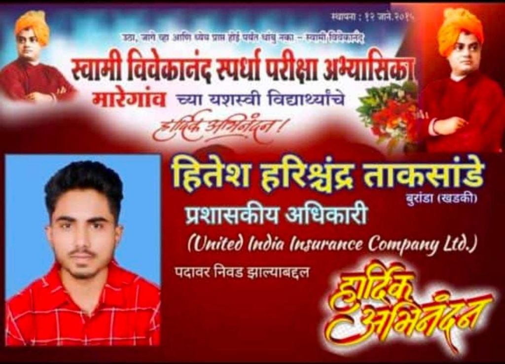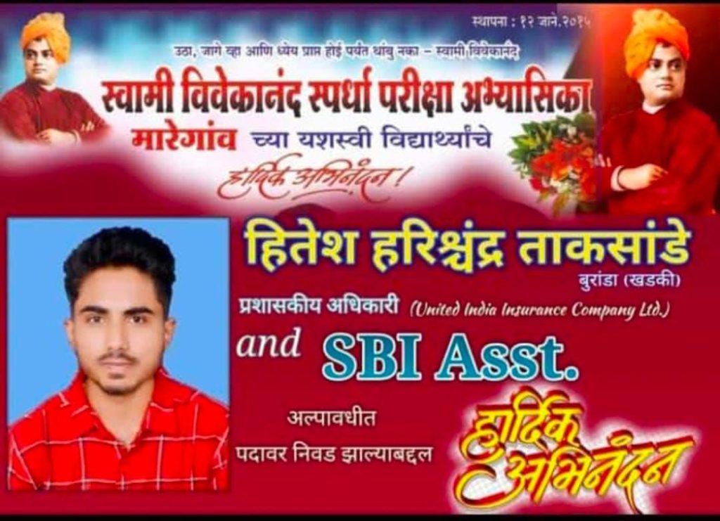 त्यानंतर त्याने मारेगाव येथील स्वामी विवेकानंद स्पर्धा परीक्षा अभ्यासिकेत दोन वर्ष तयारी केली.त्याच्या जिद्दीच्या तसेच चिकाटीच्या भरोशावर त्याने 1) युनाइटेड इंडिया इन्शुरन्स कंपनी एलटीडी मध्ये Administrative officer scale -1 (प्रशासकीय अधिकारी)(2) स्टेट बँकेच्या झालेल्या परीक्षेत घवघवीत यश संपादित करीत junior Associates (कनिष्ठ सहयोगी ) SBI लिपिक….! प्रशासकीय म्हणून स्वतःला सिद्ध केले. त्याच्या या यशाबद्दल सर्वत्र हितेशचे कौतुक होत आहे.