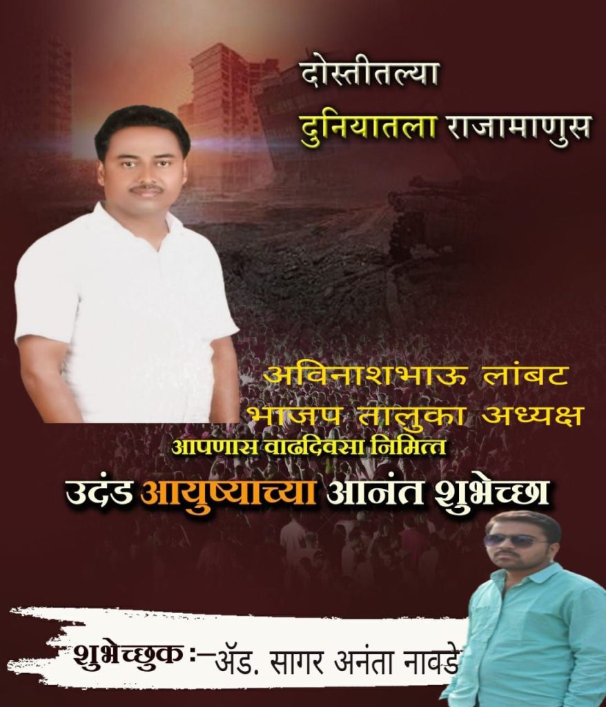शुभेच्छुक:-मित्र परिवार मारेगाव तथा अँड सागर अनंता नावडे रा. चिंचाळा तालुका मारेगाव जि. यवतमाळ