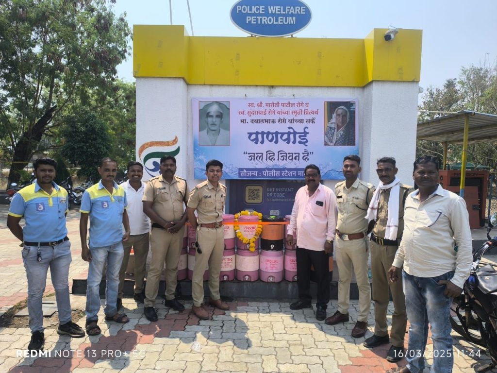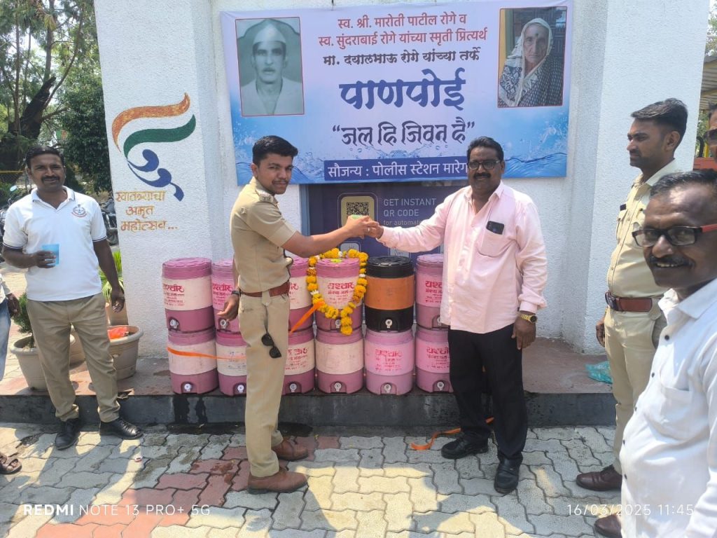 मारेगाव येथील पोलीस वेल्फेअर पेट्रोल पंपा समोर आज दिनांक 16 मार्च 2025 रोज रविवारला सकाळी 11:30 वाजता स्व.श्री.मारोती पाटील रोगे व स्व.सुंदराबाई रोगे यांच्या स्मृती प्रित्यर्थ पाणपोईचे पोलीस उपनिरीक्षक विक्की जाधव यांच्या हस्ते उद्घाटन करण्यात आले.