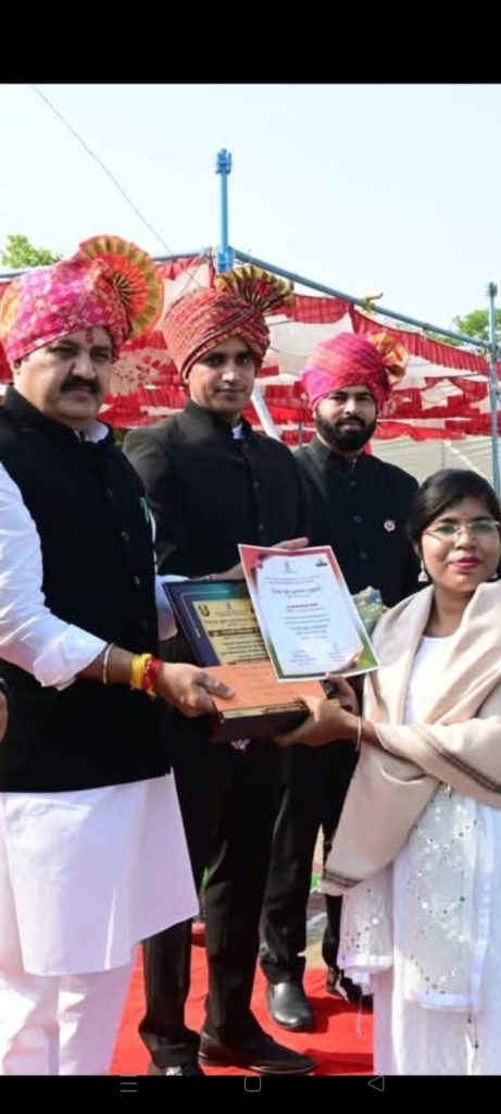 मागील तीन वर्षातील कार्याची दखल घेऊन जिल्हा क्रीडा अधिकारी कार्यालय यवतमाळ यांच्या वतीने दि. १ मे २०२५ रोजी महाराष्ट्र दिन व कामगार दिनाचे औचित्य साधून पोस्टल ग्राउंड यवतमाळ येथे शासकीय समारंभामध्ये मा. पालकमंत्री श्री. संजय राठोड साहेब, जिल्हाधिकारी श्री. विकास मीना, जिल्हाक्रीडा अधिकारी श्री. घनश्याम राठोड , पोलिस अधिक्षक श्री. कुमार चिंता,