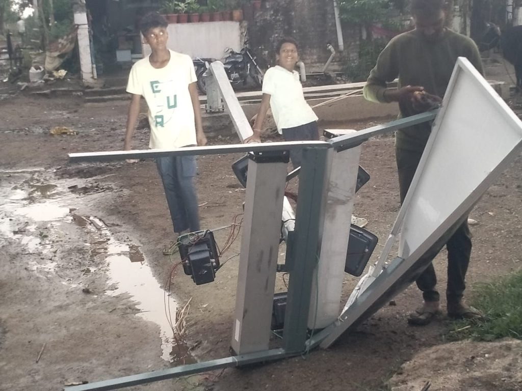 सौर ऊर्जेचा खांब पडला, घराचे मोठे नुकसान