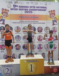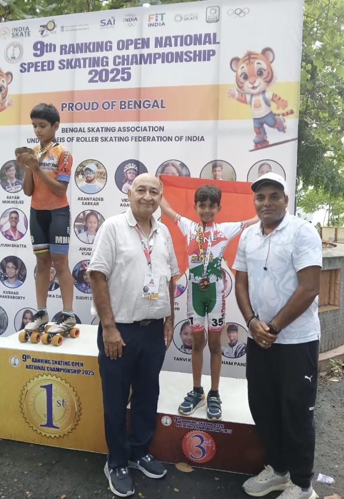 मारेगाव तालुक्यातील बोटोणी येथील सध्या राहणार कोंढवा बु. पुणे येथील कु. मनस्वी विशाल पिंपरे हिने नुकत्याच कोलकत्ता, पश्चिम बंगाल येथे पार पडलेल्या रोलर स्केटिंग फेडरेशन ऑफ इंडिया आयोजित ९व्या रँकिंग ओपन नॅशनल स्पीड स्केटिंग चॅम्पियनशिप २०२५ मध्ये १o वर्षा आतील मुलीच्या वयोगटात २०० मीटर , ५०० मीटर आणि १००० मीटर स्पीड स्केटिंग रेस मध्ये ३ कांस्य पदके मिळवून ह्या नॅशनल स्केटिंग चॅम्पियनशिप मध्ये महाराष्ट्र राज्यासाठी अभिमानास्पद अशी कामगिरी केली आहे.
