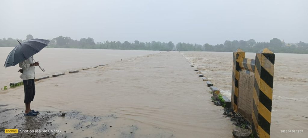 तालुक्यात गेल्या दोन दिवसा पासुन सततच्या पावसाने तालुक्याला अक्षरशः झोडपले असून अनेक शेतकऱ्यांची शेती पाण्याखाली गेलेली आहे.तर कित्येक शेतकऱ्यांचे अतोनात नुकसान झाल्याचे चित्र मारेगाव तालुक्यात दिसून येत आहेत. काही शेतकऱ्यांच्या शेतीला तलावाचे स्वरूप आल्यासारखे दिसत आहे. तर आज दिनांक 9 जुलै 2025 रोज बुधवारला दुपारी पासुन कोसारा पुलावरून पाणी असल्याने यवतमाळ व चंद्रपूर जिल्ह्याचा संपर्क तुटलेला आहे.