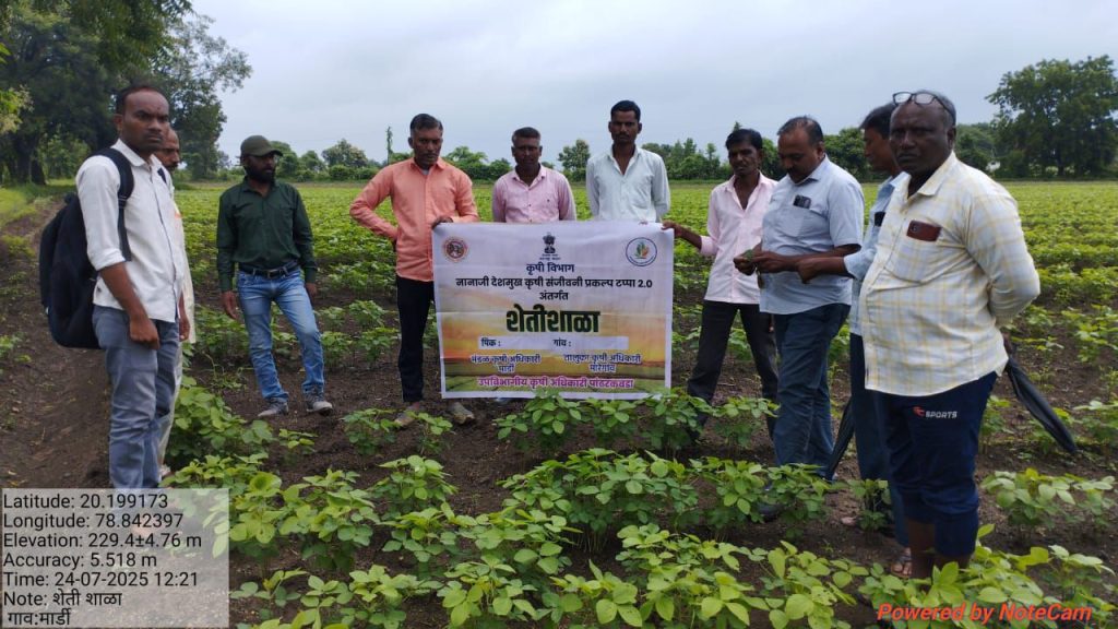 उपविभागीय कृषी अधिकारी पांढरकवडा चंदन निघोट यांच्या मार्गदर्शनाखाली आयोजित शेतीशाळांमधून शेतकऱ्यांना पिक संरक्षणाचे धडे देण्यात येत आहे. तालुका कृषि अधिकारी सुरेश बुटले यांच्या नियोजनातून मार्डी येथे सोयाबिन पिकाच्या शेतीशाळेचा दुसरा वर्ग नुकताच संपन्न झाला.