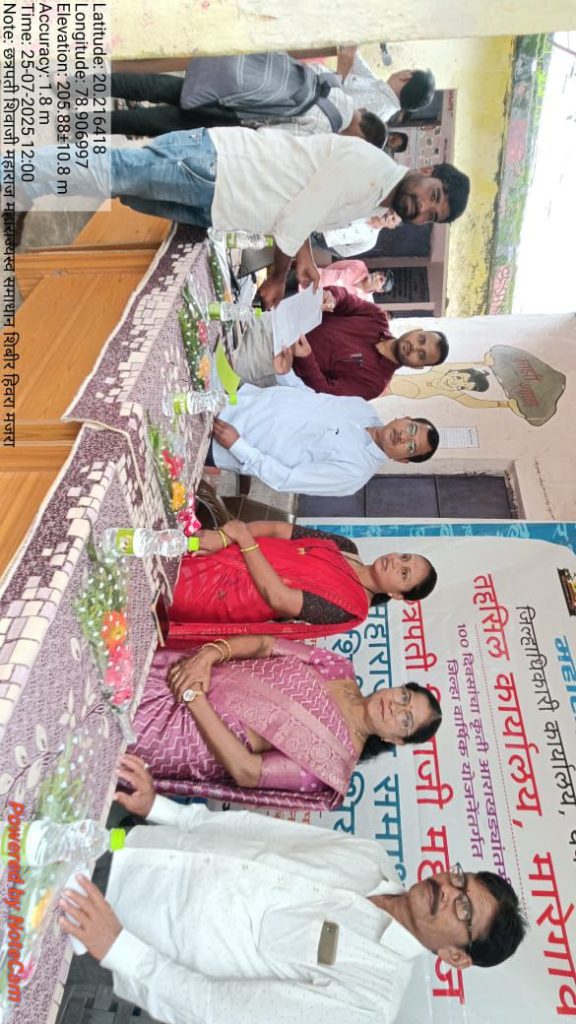 मारेगाव:तालुक्यातील वनोजा देवी महसूल मंडळातील मौजा हिवरा मजरा येथे आज दि 25 जुलै 2025 रोज शुक्रवारला महाराष्ट्र शासन महसूल विभागाच्या वतीने “छत्रपती शिवाजी महाराज महाराजस्व समाधान शिबिर अभियान ” ह्या कार्यक्रमा अंतर्गत महाराजस्व समाधान शिबिर घेण्यात आले.