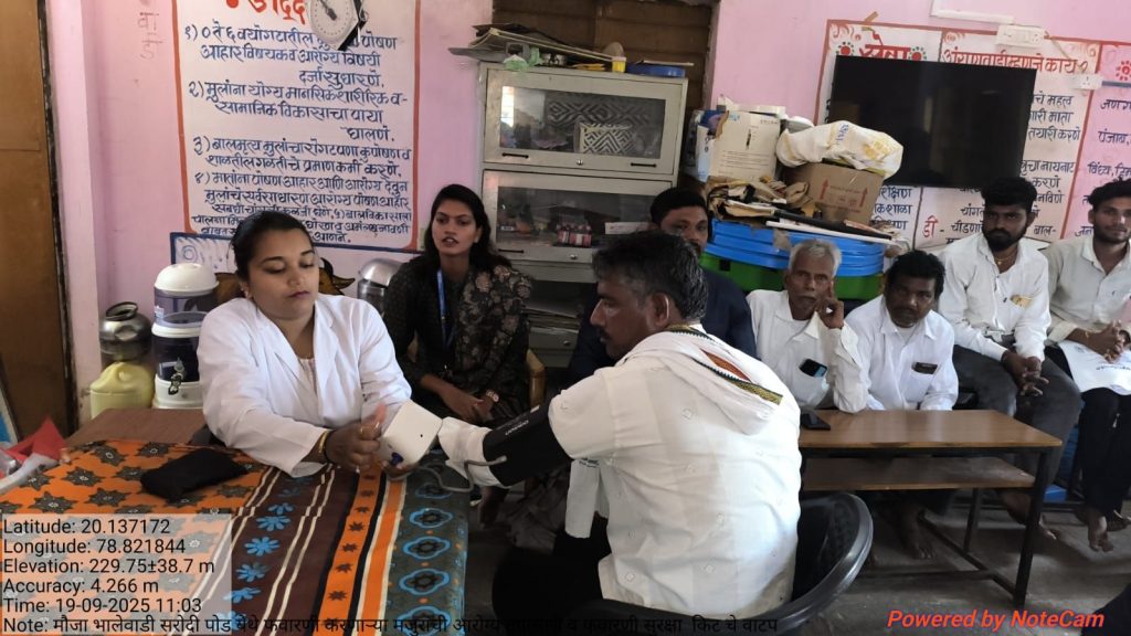 शिबिरादरम्यान आरोग्य विभागातील आवारी मॅडम व तेजस्विनी चंदनखेडे यांनी सर्व शेतकरी व शेतमजुरांची तपासणी करून योग्य वैद्यकीय सल्ला दिला. यावेळी शेतकरी व शेतमजुरांना मोफत फवारणी किटचे वाटप करण्यात आले.