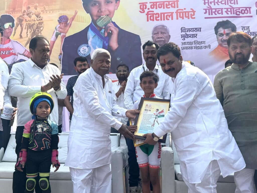 गिनीज विक्रमधारक कु. मनस्वी पिपरेचे मार्गभर अभूतपूर्व स्वागत