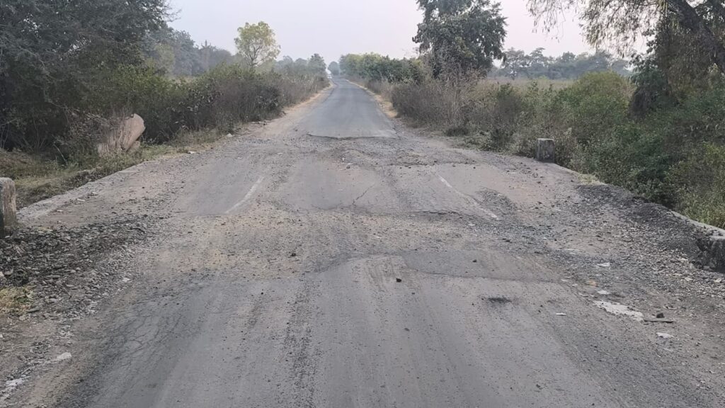 नवीन रस्त्यावर दीड ते साडेतीन फुटांचे खड्डे; अपघातांना खुले आमंत्रण
