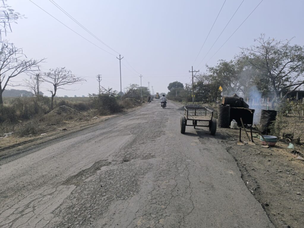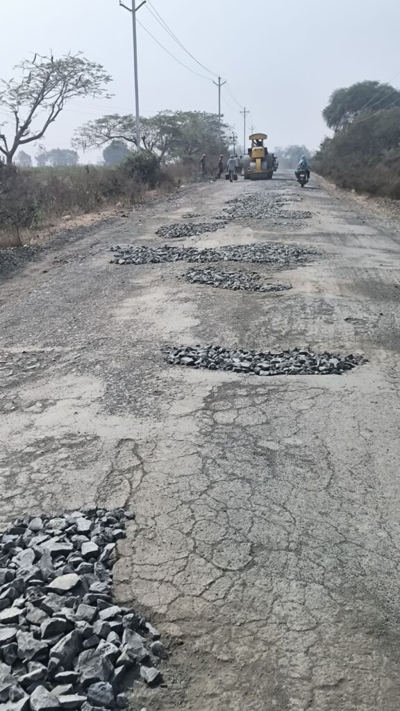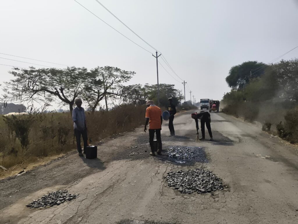 सदर रस्त्याचे डांबरीकरणाचे काम नुकतेच पूर्ण झाले होते. मात्र अवघ्या काही दिवसातच कुंभा व महादापेठ गावांदरम्यान असलेल्या पुलावर दीड ते साडेतीन फूट खोल खड्डे पडल्याने रस्त्याची अवस्था अत्यंत धोकादायक बनली होती. या मार्गावरून दुचाकी, चारचाकी वाहनांसह एसटी बसची मोठ्या प्रमाणात वाहतूक होत असल्याने अपघाताचा गंभीर धोका बनला होता.