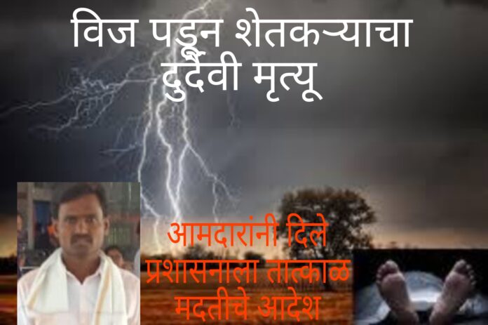 काल दि. 6 ऑगस्टला वीज पडून मारेगाव तालुक्यातील पांढरकवडा (पिसगाव ) येथील शेतात काम करत असलेल्या शेतकऱ्याच्या अंगावर वीज पडून शेतकरी जागीच ठार झाल्याची दुर्दैवी घटना घडली होती. सदर घटनेत अनिल रमेश फरताडे वय अंदाजे 34 वर्षे रा.पांढरकवडा (पिसगाव ) ता.मारेगाव यांचा वीजअंगावर विज पडून मृत्यू झाला होता.