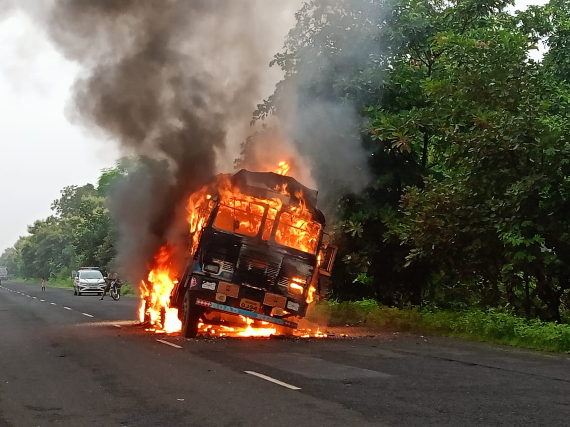 मारेगाव : तालुक्यातील बोटोनीजवळ आज दिनांक १६ ऑगस्ट २०२५ रोज शनिवारला पहाटे ५ वाजताच्या सुमारास एका ट्रकला अचानक आग लागल्याने परिसरात मोठी खळबळ उडाली. शॉर्टसर्किटमुळे ही आग लागल्याचा प्राथमिक अंदाज वर्तविण्यात येत आहे.