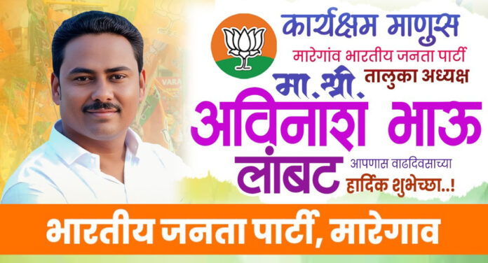 मारेगाव :भारतीय जनता पार्टी मारेगाव तालुक्याचे अध्यक्ष अविनाश भाऊ लांबट यांचा वाढदिवस आज उत्साहात साजरा करण्यात येत आहे. कार्यक्षम नेतृत्व, सामाजिक बांधिलकी आणि कार्यकर्त्यांशी असलेला आपुलकीचा स्वभाव यामुळे अविनाशभाऊ यांनी मारेगाव तालुक्यातील राजकारणात भक्कम स्थान निर्माण केले आहे.
