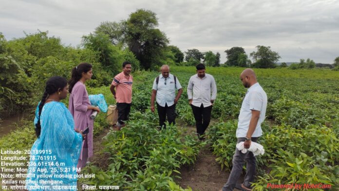तालुका कृषी अधिकारी कु. दिपाली खवले यांनी शेतकऱ्यांना आवाहन केले की, “सोयाबीन पिकात पिवळ्या मोझक रोगाचा प्रसार रोखण्यासाठी वेळेवर प्रतिबंधात्मक उपाययोजना करणे अत्यंत गरजेचे आहे, अन्यथा उत्पादनात मोठी घट होण्याची शक्यता आहे.”