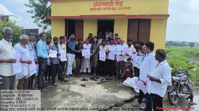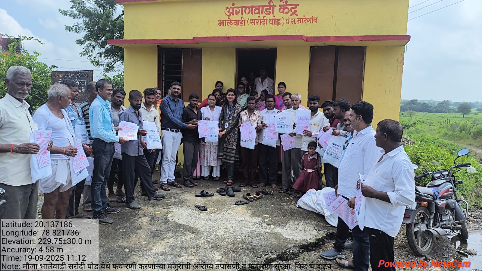 मारेगाव : तालुक्यातील भालेवाडी (सरोदी पोड) या मजूर बहुल गावात सुरक्षित फवारणी व आरोग्य तपासणी शिबिराचे आयोजन करण्यात आले होते. तालुका कृषि अधिकारी कार्यालय, पंचायत समिती व आरोग्य विभाग यांच्या संयुक्त विद्यमाने शुक्रवारी (दि. १९ सप्टेंबर) संपन्न झालेल्या या शिबिरात शेतकऱ्यांना सुरक्षित फवारणीसंबंधी मार्गदर्शन करण्यात आले.