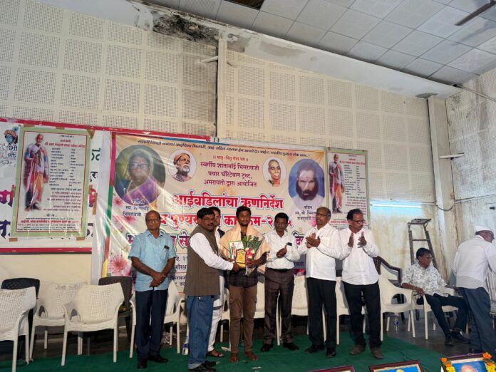मारेगाव : तालुक्यातील वेगाव येथील अल्पभुधारक शेतकरी श्री. योगेश्वर कापसे व सौ. सुलोचना कापसे यांच्या मुलांनी वैद्यकीय क्षेत्रात उल्लेखनीय यश संपादन केले असून, अमरावती येथील गोकुल धाम गोरक्षण संस्था येथे मात्रु-पित्रु अखरपोक सणाचे औचित्य साधून त्यांच्या मुलगा हर्षदिप कापसे याचा गुणगौरव शाल, श्रीफळ देऊन मान्यवरांच्या हस्ते करण्यात आला.