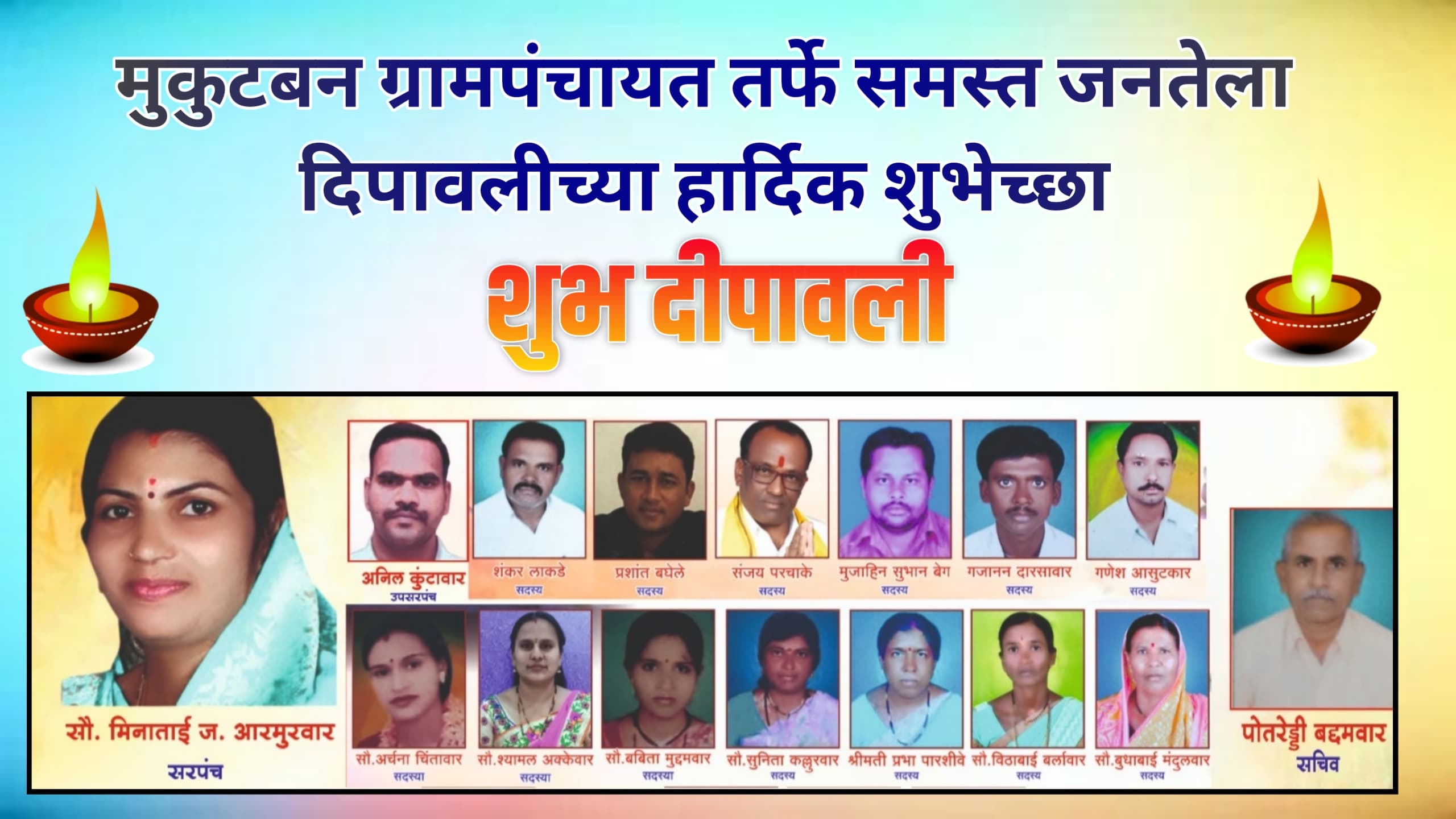 рдореБрдХреБрдЯрдмрди рдЧреНрд░рд╛рдордкрдВрдЪрд╛рдпрддреАрддрд░реНрдлреЗ рд╕рд░реНрд╡ рдЧреНрд░рд╛рдорд╕реНрде, рдкрд░рд┐рд╕рд░рд╛рддреАрд▓ рдирд╛рдЧрд░рд┐рдХ, рддрд╕реЗрдЪ рд╕рд░реНрд╡ рд╢реБрднреЗрдЪреНрдЫреБрдХ рдмрд╛рдВрдзрд╡рд╛рдВрдирд╛ рджреАрдкрд╛рд╡рд▓реАрдЪреНрдпрд╛ рд╣рд╛рд░реНрджрд┐рдХ рд╢реБрднреЗрдЪреНрдЫрд╛!